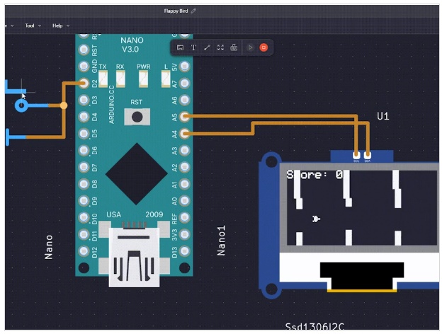 簡(jiǎn)單地復(fù)制曾經(jīng)占主導(dǎo)地位的手機(jī)游戲“Flappy Bird”使用Arduino Nano。