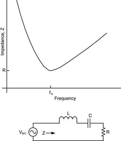 在圖1中,串聯(lián)諧振變換器顯示為半橋配置。在離線應(yīng)用程序中,VIN通常是大約400V的上游功率因數(shù)校正電路的輸出。共振網(wǎng)絡(luò)由Rr和CR組成。變壓器的主電感被認(rèn)為是大到不影響諧振網(wǎng)絡(luò)。它被稱為系列諧振轉(zhuǎn)換器,因?yàn)樨?fù)載電阻以及整流器和濾波器電路的沖擊,可以通過(guò)變壓器的轉(zhuǎn)動(dòng)比被反射回原電路。這一行動(dòng)有效地使負(fù)載與共振網(wǎng)絡(luò)相串聯(lián)。諧振網(wǎng)絡(luò)和反射負(fù)載電阻形成一個(gè)分壓器。在一般的串聯(lián)共振電路中,諧振網(wǎng)絡(luò)的阻抗在諧振頻率的最小值。如圖2所示。