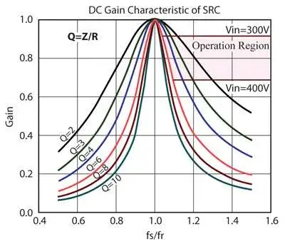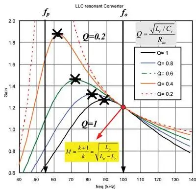 由于在LLC諧振變換器中Lp仍然大于Lp,通常3-8倍,動(dòng)力系統(tǒng)將在共振頻率下獲得增益。
