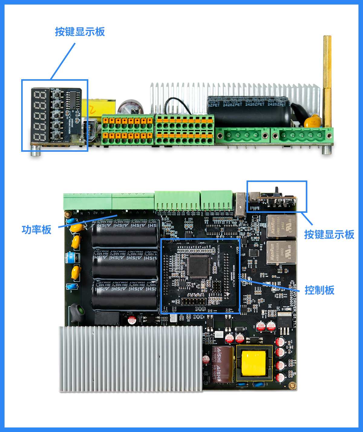 G32R501 400W EtherCAT總線型高壓伺服控制器參考方案,由功率板、控制板、按鍵顯示板組成。