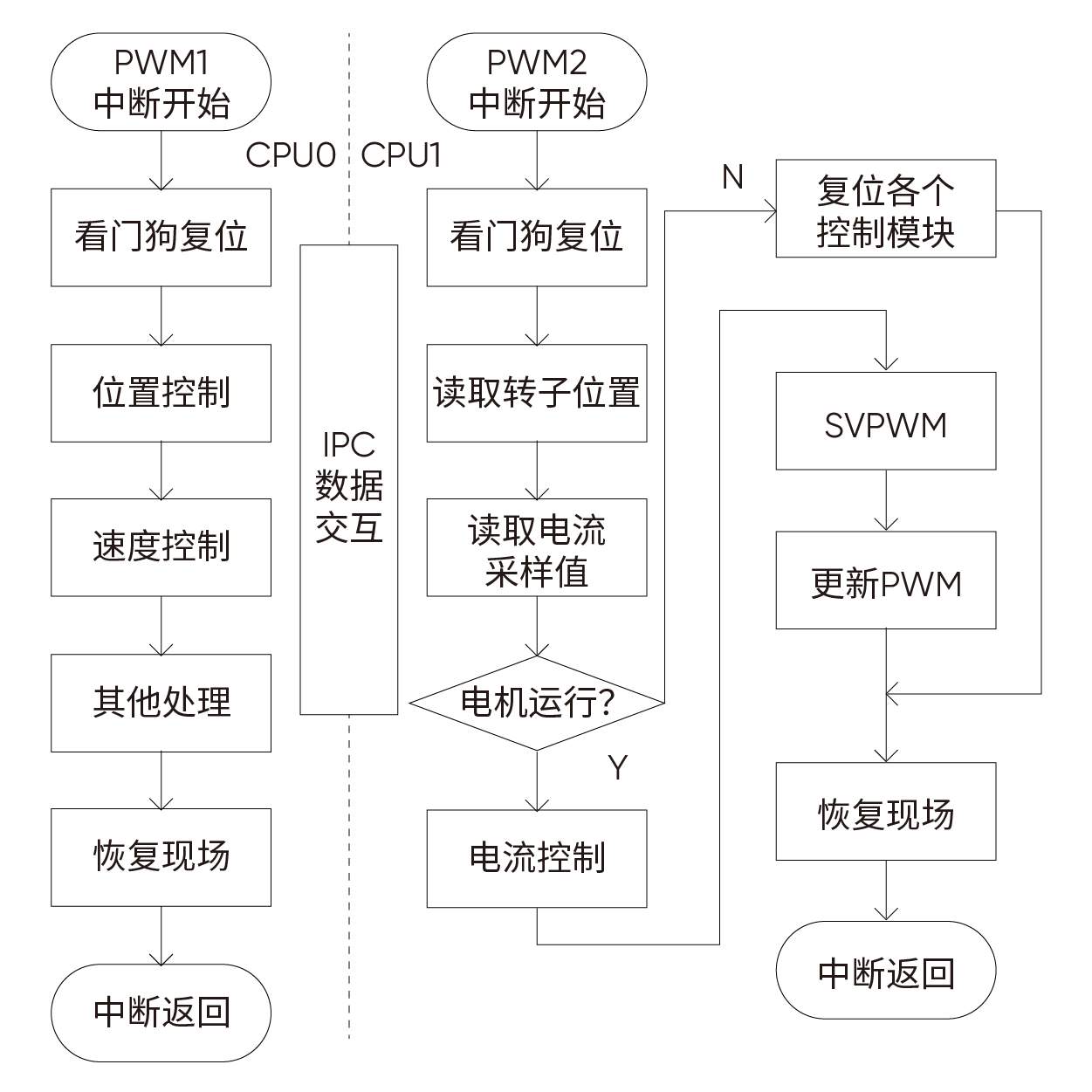 通過3路PWM模塊產生3組互補PWM信號輸出,實現(xiàn)高精度電機矢量控制;