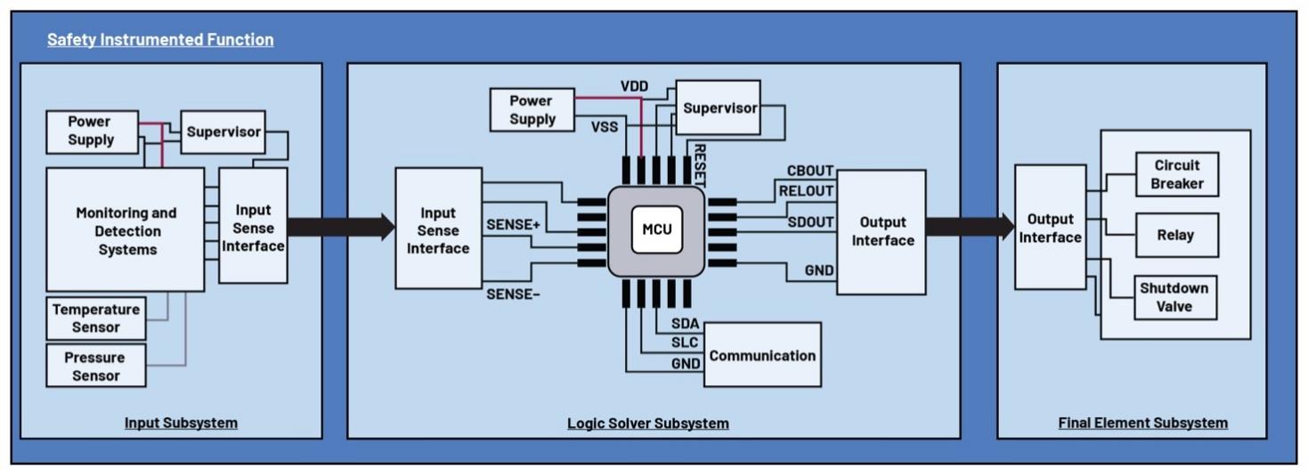 值得注意的是,監(jiān)控電路2在SIS中很有用。它們可以在輸入子系統(tǒng)中發(fā)揮作用以檢測異常,在邏輯解算器子系統(tǒng)中監(jiān)測電源或其他微控制器功能和信號故障,或者作為SIF本身,通過復(fù)位信號使系統(tǒng)進(jìn)入安全狀態(tài)。這一點可以從圖3中看出。