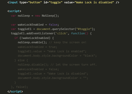 它利用了richtr的NoSleep.js javascript庫來防止手機(jī)屏幕在一段時(shí)間不活動(dòng)后自動(dòng)鎖定,這將發(fā)生在手機(jī)處于谷歌Cardboard Viewer中時(shí)。在版本1中,我建議你使用手機(jī)的設(shè)置關(guān)閉自動(dòng)鎖定功能。更新后的代碼使其更方便,更易于使用。