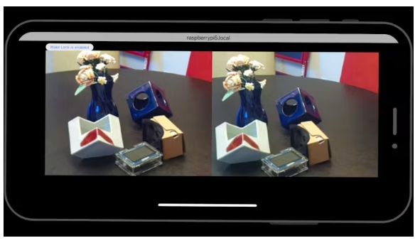 您可以打開手機(jī)瀏覽器上的鏈接(只需確保您的手機(jī)與樹莓派在同一網(wǎng)絡(luò)上),并將手機(jī)放在谷歌Cardboard(或類似的查看器)等3D立體查看器中,以便在您的查看器上獲得3D立體流媒體相機(jī)。