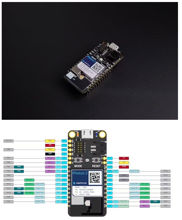 這個項目的核心是粒子光子2微控制器,一個輕量級和強(qiáng)大的設(shè)備,適合實時跌倒檢測。支持2.4 GHz和5ghz Wi-Fi,確保各種網(wǎng)絡(luò)環(huán)境下的可靠連接。由Realtek RTL8721DM處理器和運行在200 MHz的ARM Cortex M33 CPU驅(qū)動,Photon 2提供復(fù)雜,高速應(yīng)用所需的處理能力。其緊湊的外形和物聯(lián)網(wǎng)兼容性使其易于集成到可穿戴設(shè)備中。