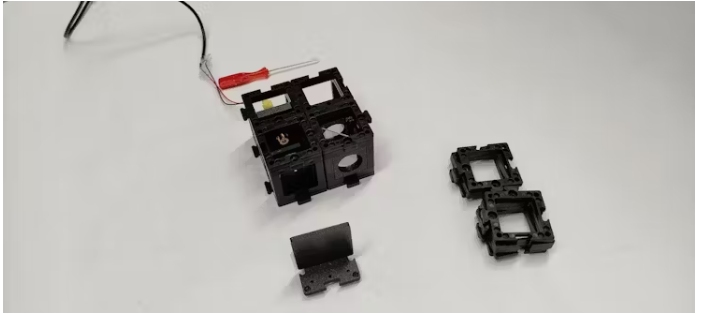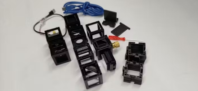 我們破例跳過打印零件的步驟,購買即用型OpenUC2發(fā)現(xiàn)干涉儀套件并立即開始。這包括立方體、鏡子支架和分束器支架,最重要的是,520納米激光筆。