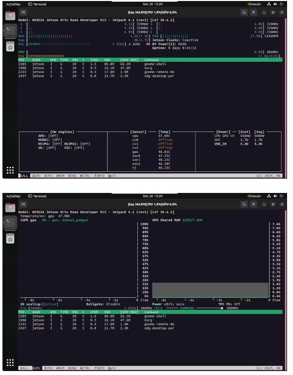 6. 使用Jtop命令查看開發(fā)板的當(dāng)前內(nèi)部信息