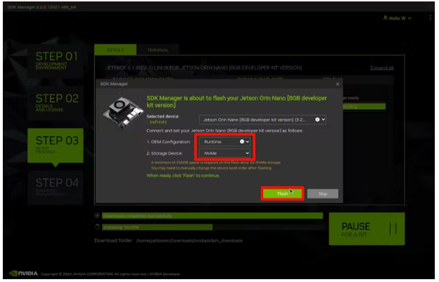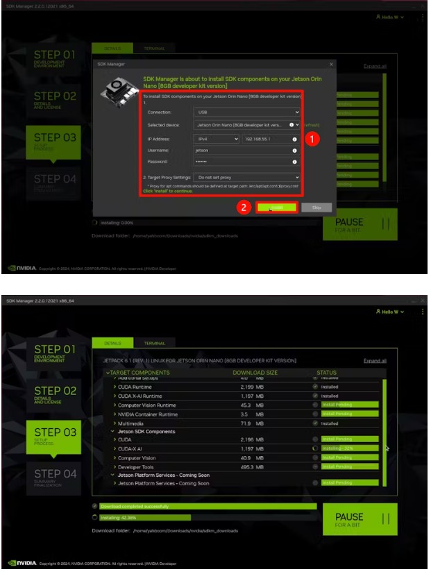 在整個(gè)過程中,SDK管理器將自動(dòng)控制Jetson板的彈出和安裝。