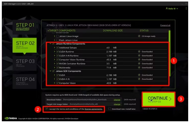 3.2此時(shí)SDK管理器檢測(cè)到Jetson Orin NANO板,會(huì)自動(dòng)彈出如下界面,需要我們選擇相應(yīng)的主板型號(hào)。