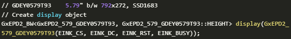 GxEPD2_579_GDEY0579T93:類標識符,充當此顯示模型的特定驅動程序。