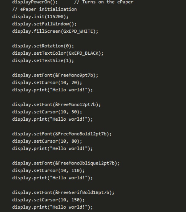 GxEPD2提供了處理文本的各種功能,例如編寫消息、選擇字體、調整顏色和定義大小。