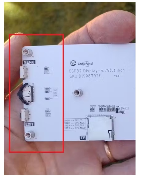5.79″CrowPanel(像其他型號一樣)沒有在GxEPD2支持的顯示器中列出,因為它是除了ePaper顯示器之外集成了幾個組件的設備。根據我的測試,所包含的顯示器的特性與Good display中的GDEY0579T93型號匹配,該型號是本示例代碼中使用的型號。
