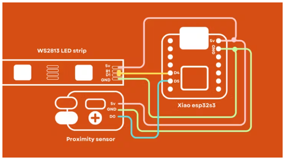 晾干的時(shí)候,讓我們把注意力轉(zhuǎn)移到電子產(chǎn)品上。在我們的燈的核心,我們將使用一個(gè)微小的ESP32板,稱為小ESP32S3。這對(duì)于從互聯(lián)網(wǎng)上獲取時(shí)間和確保led接收到正確的信號(hào)至關(guān)重要。