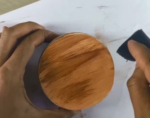 現(xiàn)在,讓我向你展示我是如何給泡沫板逼真的木紋外觀。首先,我混合了一種淺棕色的丙烯酸顏料,并在所有的表面涂上了它。均勻地覆蓋邊緣也很重要。完成后,讓它完全干透。