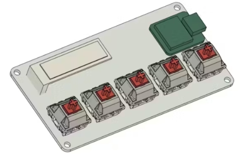 OLED屏幕放置在左上角,XIAO放置在右上角。所有的機(jī)械鍵都排列在板的底部。
