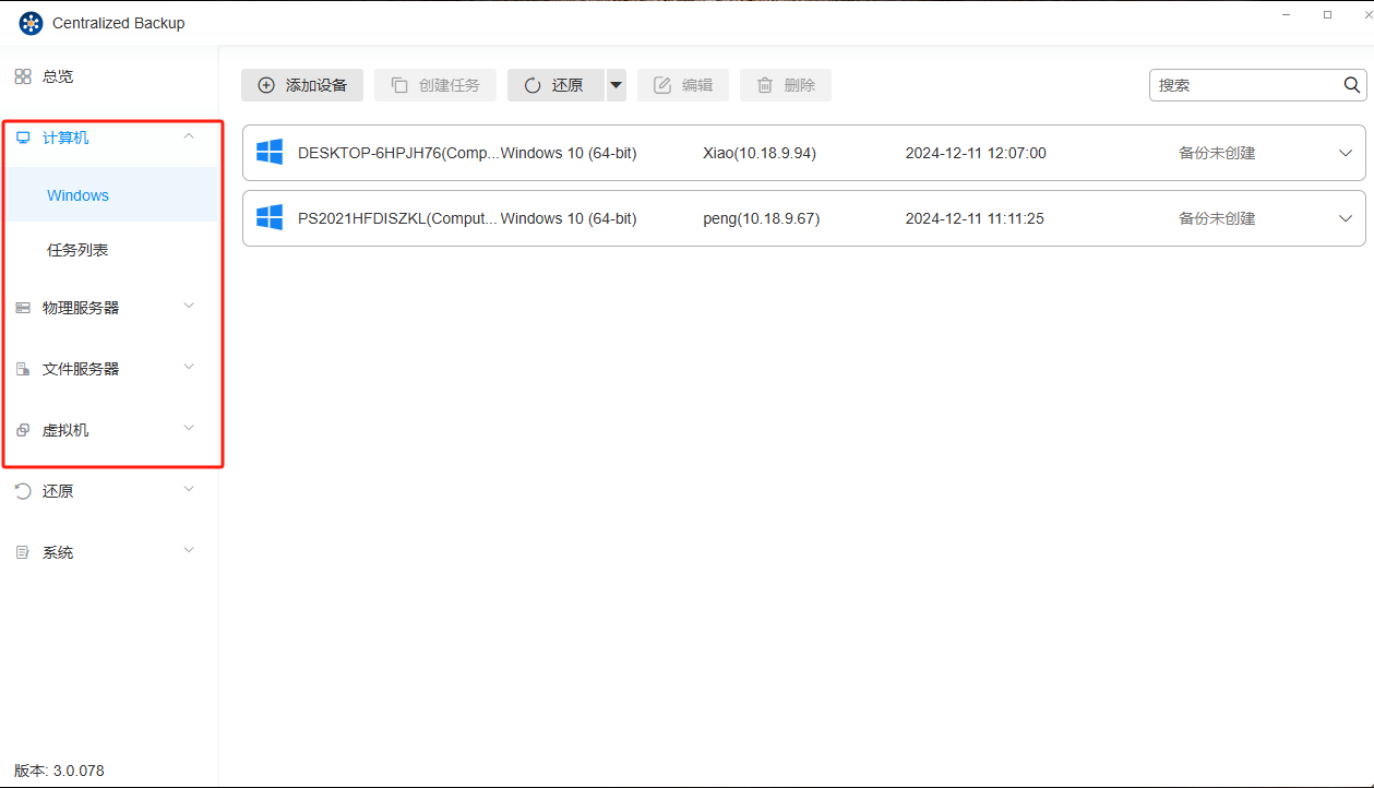 在數(shù)據(jù)備份方面,鐵威馬F8 SSD Plus提供了全方位的備份解決方案,讓新春外出的用戶無(wú)需擔(dān)心數(shù)據(jù)丟失的煩惱。其中,Centralized Backup(中央備份)功能尤為引人注目。這是鐵威馬為商業(yè)用戶開(kāi)發(fā)的一款專業(yè)災(zāi)備工具,通過(guò)TNAS作為中央備份服務(wù)器,無(wú)需單獨(dú)在每臺(tái)主機(jī)進(jìn)行配置,即可實(shí)現(xiàn)對(duì)企業(yè)內(nèi)部員工電腦、工作站、服務(wù)器、虛擬機(jī)等存儲(chǔ)空間的集中式主動(dòng)備份。
