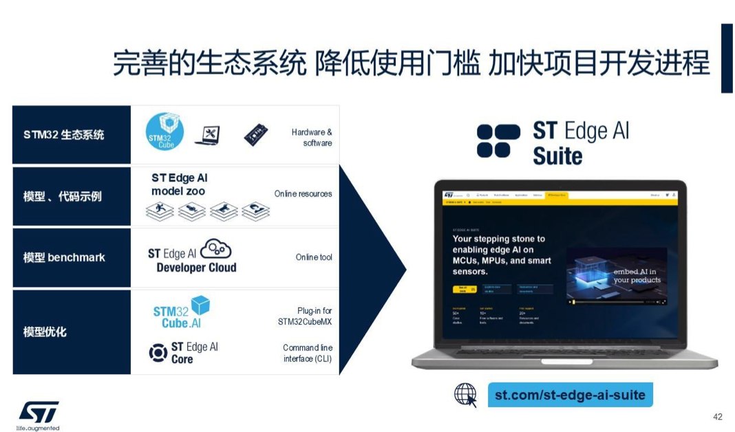 STM32 Edge AI Suite 開發(fā)工具套件為開發(fā)者提供了完善的生態(tài)系統(tǒng)支持,涵蓋了從硬件開發(fā)到模型優(yōu)化的完整流程。STM32N6 完全兼容 STM32 Cube,開發(fā)者可以通過代理商或 ST 銷售團隊申請硬件開發(fā)板(如 DK 板和 Nucleo 板),并從官網(wǎng)免費下載所有相關(guān)的軟件工具。在模型開發(fā)方面,ST 提供了Edge AI Model Zoo 模型庫,其中包含聲音檢測、目標(biāo)識別、目標(biāo)分割和目標(biāo)追蹤等多種應(yīng)用模型,這些模型已全面支持 STM32N6,并提供詳細(xì)的示例代碼。開發(fā)者還可以通過STM32 Edge AI Developer Cloud在線工具,連接 ST 的服務(wù)器后臺開發(fā)板,快速評估模型的推理時間、RAM 占用和所需存儲空間,為模型選擇和部署提供高效支持。此外,ST 還推出了Cube AI和Edge AI Core工具,后者提供 Command Line 工具以幫助開發(fā)者優(yōu)化和部署 AI 模型。通過這一系列工具,STM32 Edge AI Suite 讓開發(fā)者能夠輕松高效地在 STM32N6 平臺上實現(xiàn)邊緣 AI 的開發(fā)與落地,同時顯著減少開發(fā)周期和復(fù)雜性。