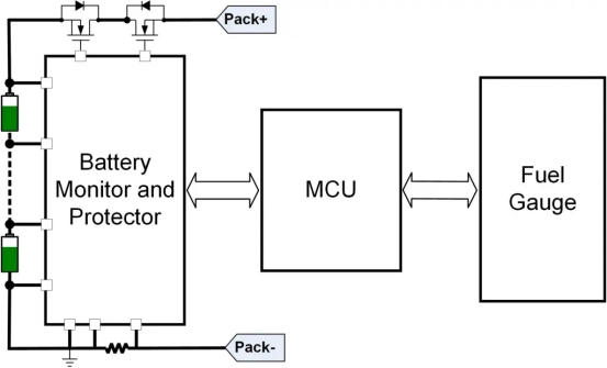 圖1顯示了低壓或中電池的完整BMS的主要結(jié)構(gòu)。燃油表可以是獨(dú)立的IC,也可以嵌入MCU中。 MCU是BMS的中心元素,從AFE和燃油表中獲取信息,并與系統(tǒng)的其余部分接口。
