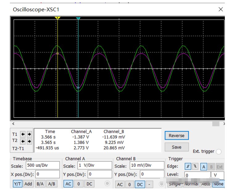 在很多情況下,信號(hào)傳輸?shù)那昂髢杉?jí)間必須是電絕緣的,采用光耦合放大電路就是最好的形式。操作方法同前。示波器調(diào)節(jié):X軸掃描為500μS/Div,A通道改為AC模式,Y軸幅度為1V/Div,B通道Y軸幅度為10mV/Div。