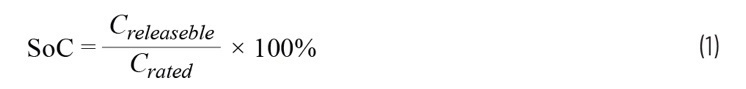 DoD表示放電深度,與SoC指標相反,定義為相對于電池額定容量(Crated)的電池已放電百分比(Creleased)。