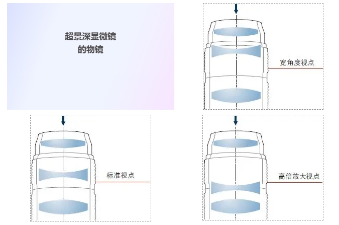 除此之外,超景深顯微鏡的物鏡還有一個(gè)非常強(qiáng)大的功能,那就是可以實(shí)現(xiàn)放大倍率從幾倍到幾千倍之間連續(xù)變化!能夠?qū)崿F(xiàn)如此強(qiáng)大變倍功能的秘訣,就是物鏡中的光學(xué)變焦系統(tǒng)。物鏡中有一個(gè)(或者一部分)光學(xué)鏡片可以在一定范圍內(nèi)上下移動(dòng),從而實(shí)現(xiàn)整體物鏡系統(tǒng)的倍率變化。