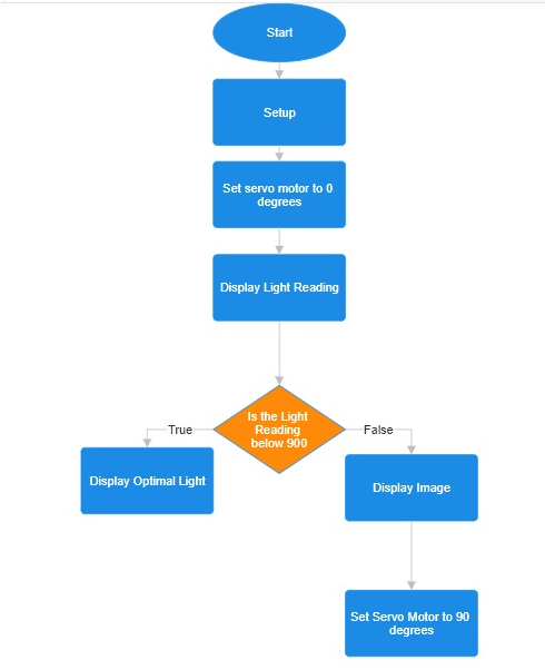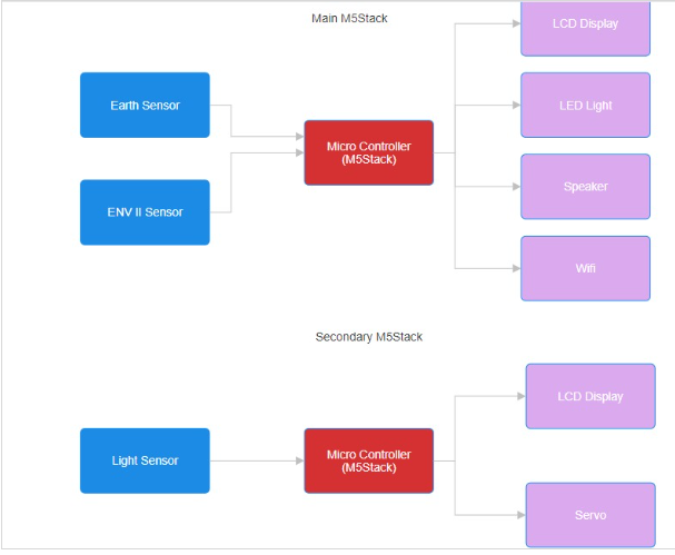 對于二級m5stack,我們輸入一個光傳感器來測量植物上的光,如果有太多的光(bbb900),我們使用伺服電機作為天窗來限制照射在植物上的光量。這可以防止植物被破壞。