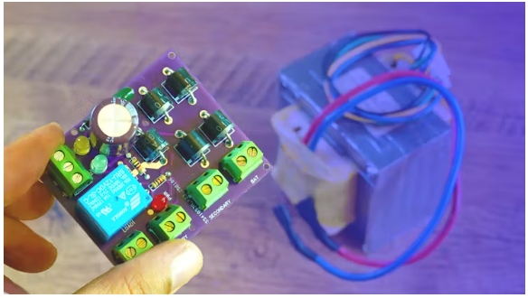 ?繼電器控制部分:使用5V SPDT繼電器在電池和交流輸入之間切換。一個1N4007反激二極管防止電壓尖峰。