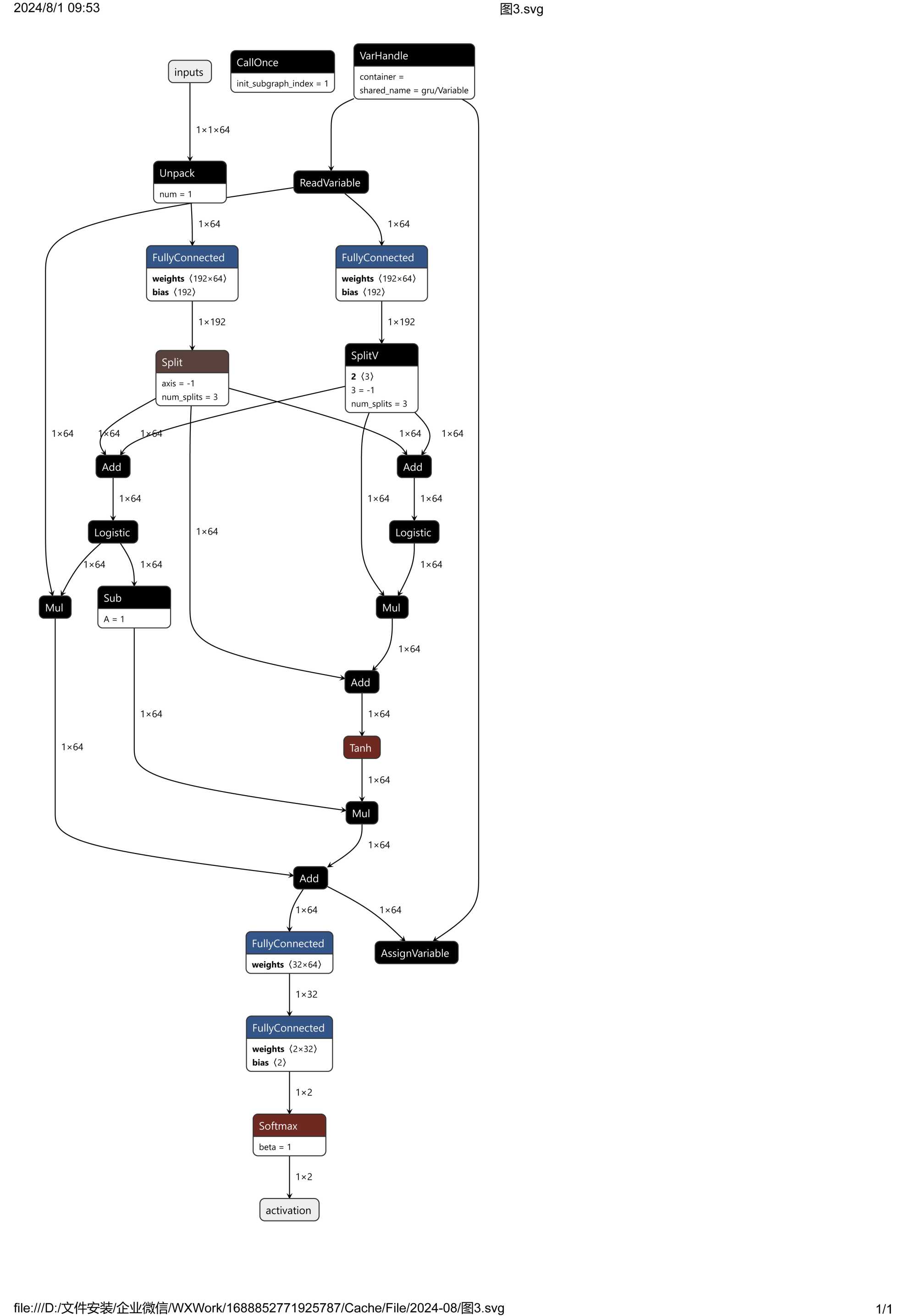 上面通過訓(xùn)練,得到了一個龐然大物。之所以龐大,是因為我們采用了unroll參數(shù)將其展開,發(fā)現(xiàn)模型其實(shí)由很多相同的模型塊組成,GRU模塊如圖2所示。