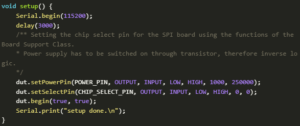 電源引腳和芯片選擇引腳分別使用dut.setPowerPin(…)和dut.setSelectPin(…)設(shè)置。