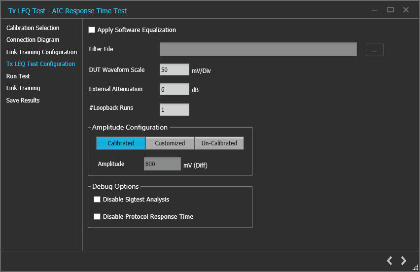 高級調試模式為LEQ測試提供了額外的故障排除能力,允許定制應力源、Tx預設、自定義模式、自動搜索CTLE和時鐘數(shù)據(jù)恢復(CDR)調諧。