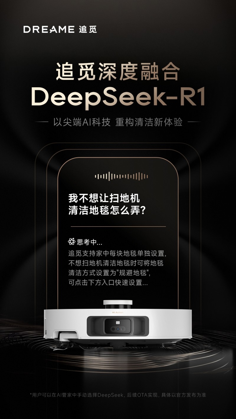 2月21日,追覓掃地機宣布已接入DeepSeek-R1大模型,即將于2月24日發(fā)布的追覓S50系列掃地機器人也將成為市面上首批搭載DeepSeek-R1的智能清潔類產(chǎn)品。