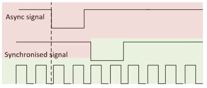 如果你不熟悉為什么我們需要同步到時(shí)鐘域。這是因?yàn)樗屑拇嫫鞫加幸粋€(gè)設(shè)置和保持時(shí)鐘邊緣的時(shí)間,它更新寄存器。