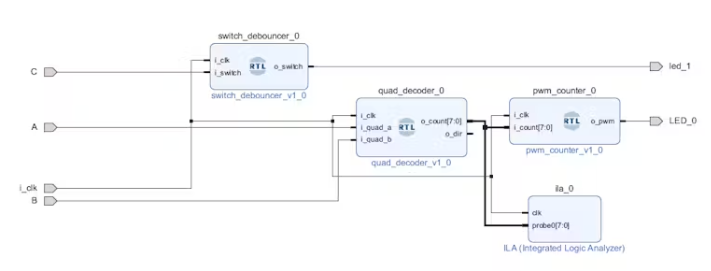 當(dāng)旋轉(zhuǎn)編碼器改變時(shí),我們可以看到ILA上的LED值發(fā)生變化。