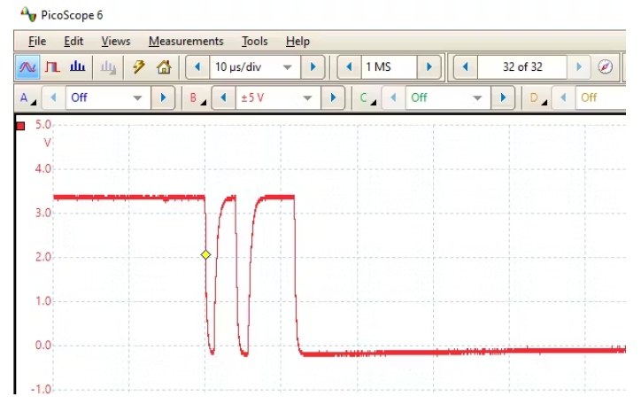 當(dāng)我們旋轉(zhuǎn)旋轉(zhuǎn)編碼器,我們會(huì)得到小故障,可以看到下面,但這些是較短的持續(xù)時(shí)間,因?yàn)檐囕喰D(zhuǎn)。