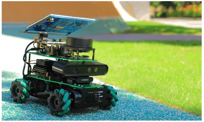 該車配備Mecanum輪轂、深度攝像頭、TOF激光雷達,可實現(xiàn)地圖導航、智能避障、手勢控制、視線檢測等功能。