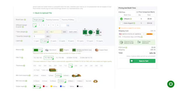 規(guī)格:選擇PCB的規(guī)格,如層數(shù),厚度和顏色。
