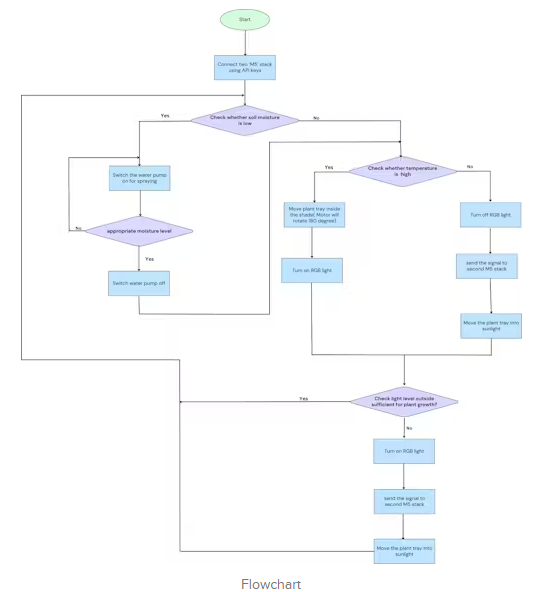 該項(xiàng)目使用一個電動平臺,使用M5GO(一種強(qiáng)大的小型物聯(lián)網(wǎng)開發(fā)工具包)自動化水培植物的運(yùn)動。環(huán)境因素包括溫度、濕度、光照強(qiáng)度等都由系統(tǒng)持續(xù)監(jiān)測。如果現(xiàn)有的環(huán)境不合適,植物就會被轉(zhuǎn)移到一個更好的環(huán)境中,以保證它們總是有最好的生長環(huán)境。