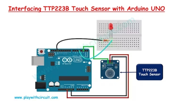讓我們將TTP223B觸摸傳感器與Arduino UNO連接起來。