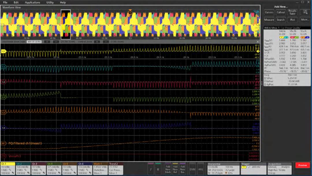 除了測量驅(qū)動器的輸出之外,對驅(qū)動器的輸入級性能(例如諧波、功率和功率因數(shù))進(jìn)行測量和評估也很重要。雖然可以將原始波形導(dǎo)出到電子表格或其他分析軟件中,但該過程非常耗時,并且設(shè)計算法時要特別注意。