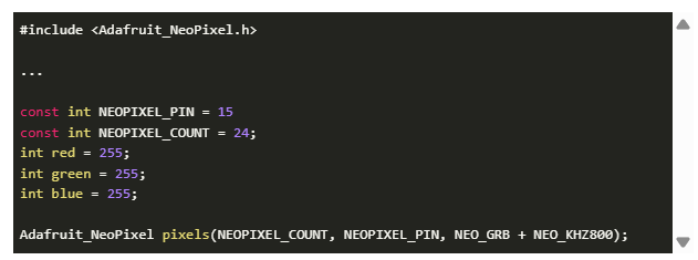 現(xiàn)在唯一的區(qū)別是,我從Adafruit添加了一個(gè)24新像素的環(huán),電源線在相同的3.3v軌道上,GND到GND,數(shù)據(jù)線在ESP32引腳D15上。