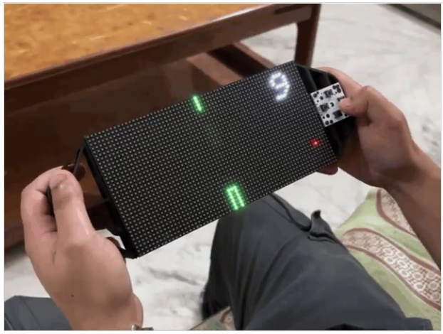 行-列掃描技術(shù)是通過HUB75鏈路實(shí)現(xiàn)的,它將一行像素?cái)?shù)據(jù)轉(zhuǎn)移到移位寄存器中。然后使用解復(fù)用器來確定應(yīng)該顯示哪些行。RGB通道、尋址引腳A、B、C和D、時(shí)鐘信號(hào)(CLK)、鎖存信號(hào)(LAT)和輸出使能(OE)引腳都包含在HUB75連接器中。