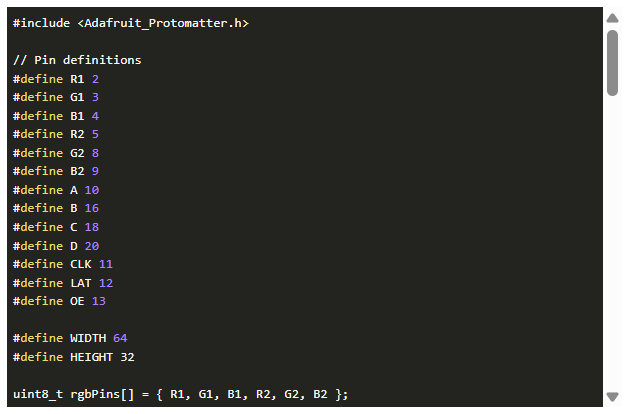 我們?cè)谶@里使用Adafruit_Protomatter庫(kù),在使用此代碼之前,您需要在Arduino IDE上安裝該庫(kù)。