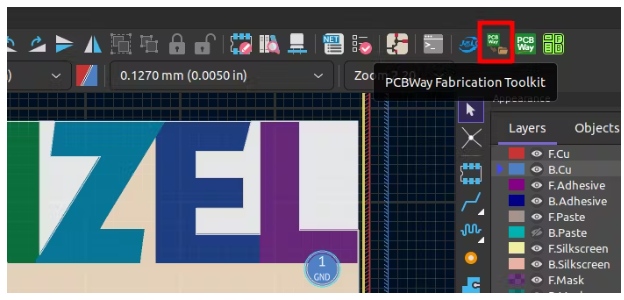 UV印刷圖像將比格伯絲網(wǎng)印刷具有更高的優(yōu)先級。因此,如果需要絲印指示符,則必須從KiCad導(dǎo)出它并手動將其放入圖像中。
