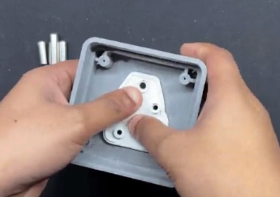 我們現(xiàn)在開始插座組裝過(guò)程,包括將交流插座放入3D打印體中,并將其固定在兩個(gè)M2螺釘上,將交流插座緊固到3D打印體上。