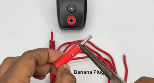 ?拿一個(gè)香蕉公連接器,焊接1米長的電線。