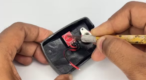 ?取一個(gè)5V蜂鳴器并將其放入頂部的孔中。