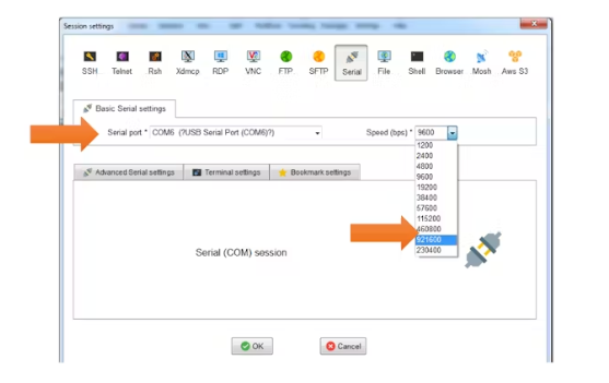 9. 打開MobaXtrem,選擇以下設(shè)置: