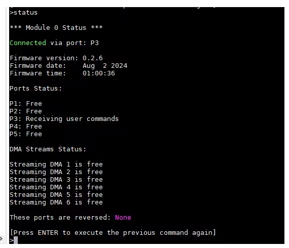 13. 輸入status查看模塊端口、固件等的報(bào)告。