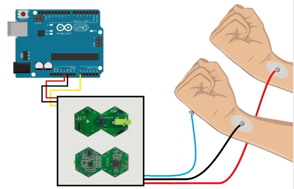 ?按照Hexabitz模塊提供的說(shuō)明將電極墊連接到受試者的身體上。