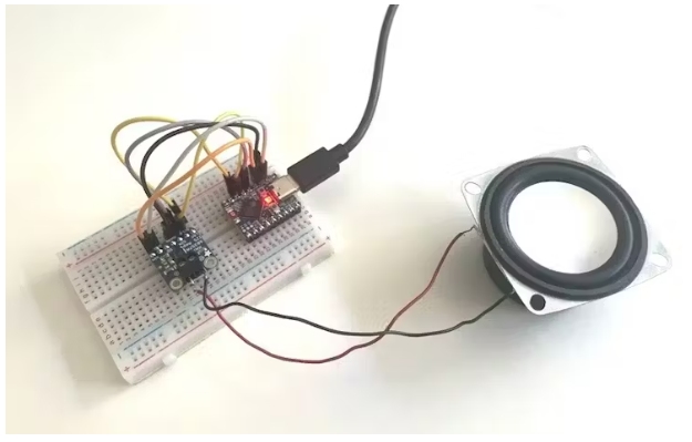 放大器模塊有一個(gè)揚(yáng)聲器插座,在那里你可以用螺絲固定電線。一旦組裝好,你的在線收音機(jī)可能是這樣的: